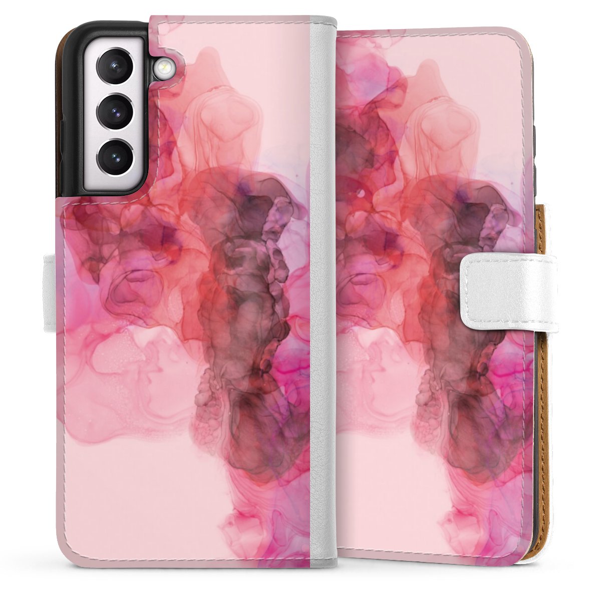 For our Sideflip Case we are using our advanced direct printing technology. The back and frontside are fully printabale, the inside of the phone bag is left unprinted. You can order the phone case without print, printed completely or also with a partial print.
