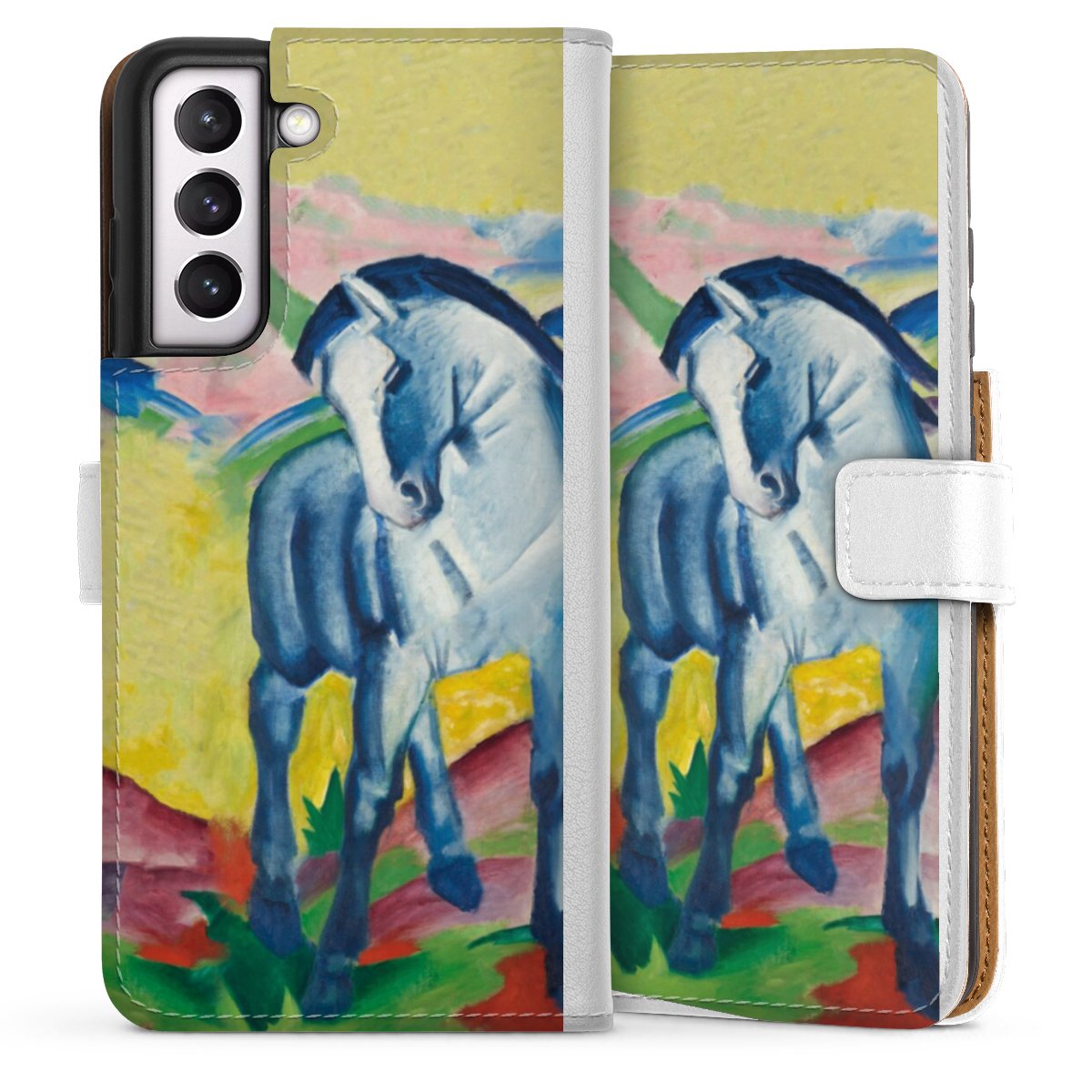For our Sideflip Case we are using our advanced direct printing technology. The back and frontside are fully printabale, the inside of the phone bag is left unprinted. You can order the phone case without print, printed completely or also with a partial print.