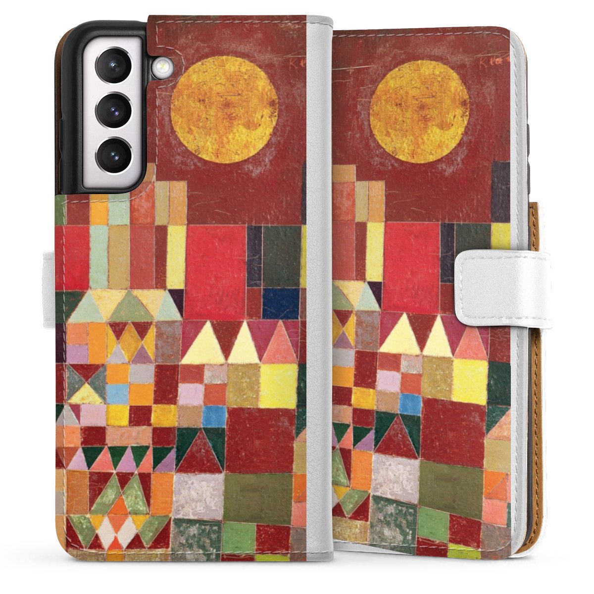 For our Sideflip Case we are using our advanced direct printing technology. The back and frontside are fully printabale, the inside of the phone bag is left unprinted. You can order the phone case without print, printed completely or also with a partial print.