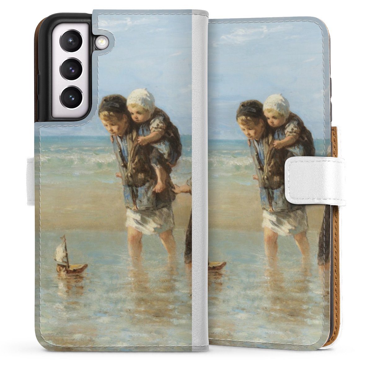 For our Sideflip Case we are using our advanced direct printing technology. The back and frontside are fully printabale, the inside of the phone bag is left unprinted. You can order the phone case without print, printed completely or also with a partial print.
