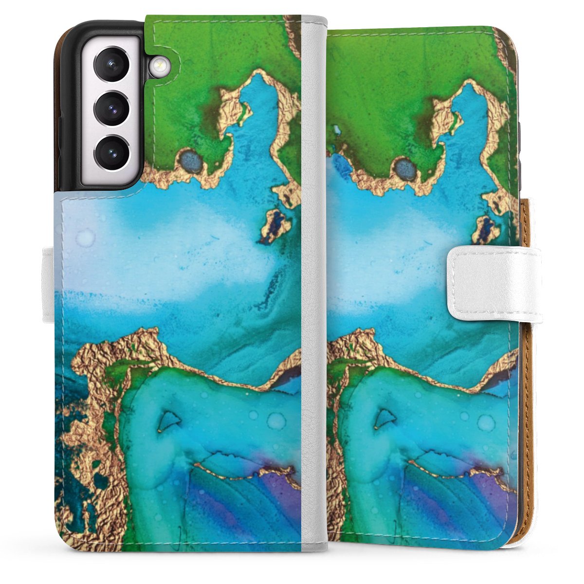 For our Sideflip Case we are using our advanced direct printing technology. The back and frontside are fully printabale, the inside of the phone bag is left unprinted. You can order the phone case without print, printed completely or also with a partial print.