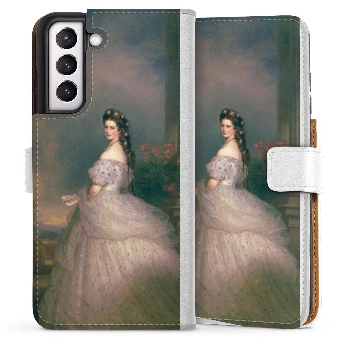 For our Sideflip Case we are using our advanced direct printing technology. The back and frontside are fully printabale, the inside of the phone bag is left unprinted. You can order the phone case without print, printed completely or also with a partial print.