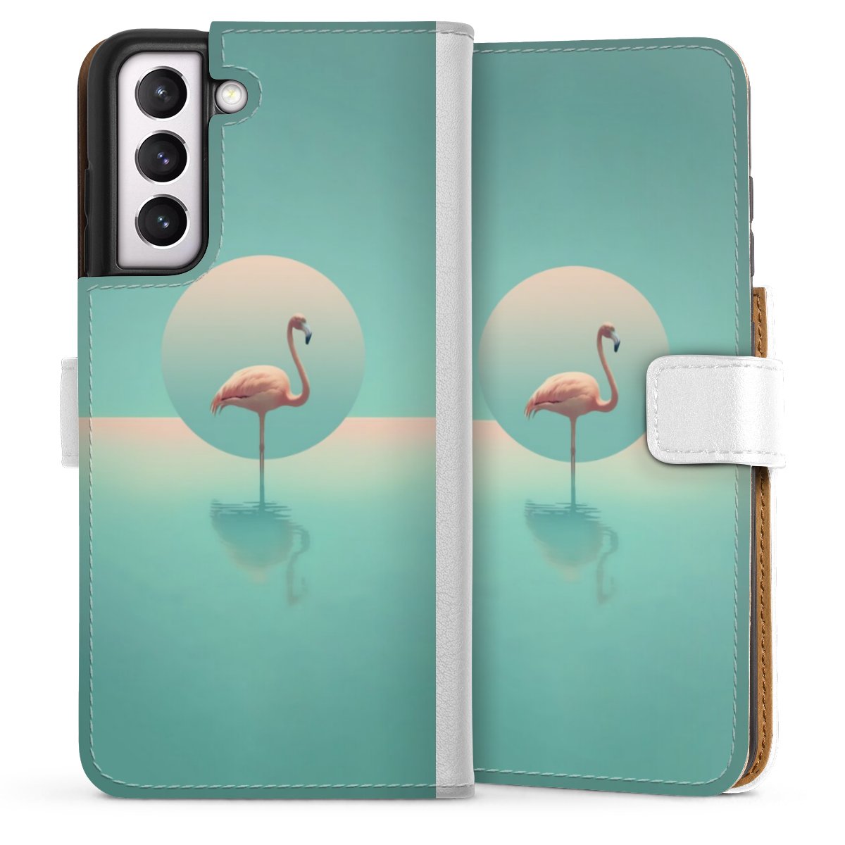 For our Sideflip Case we are using our advanced direct printing technology. The back and frontside are fully printabale, the inside of the phone bag is left unprinted. You can order the phone case without print, printed completely or also with a partial print.