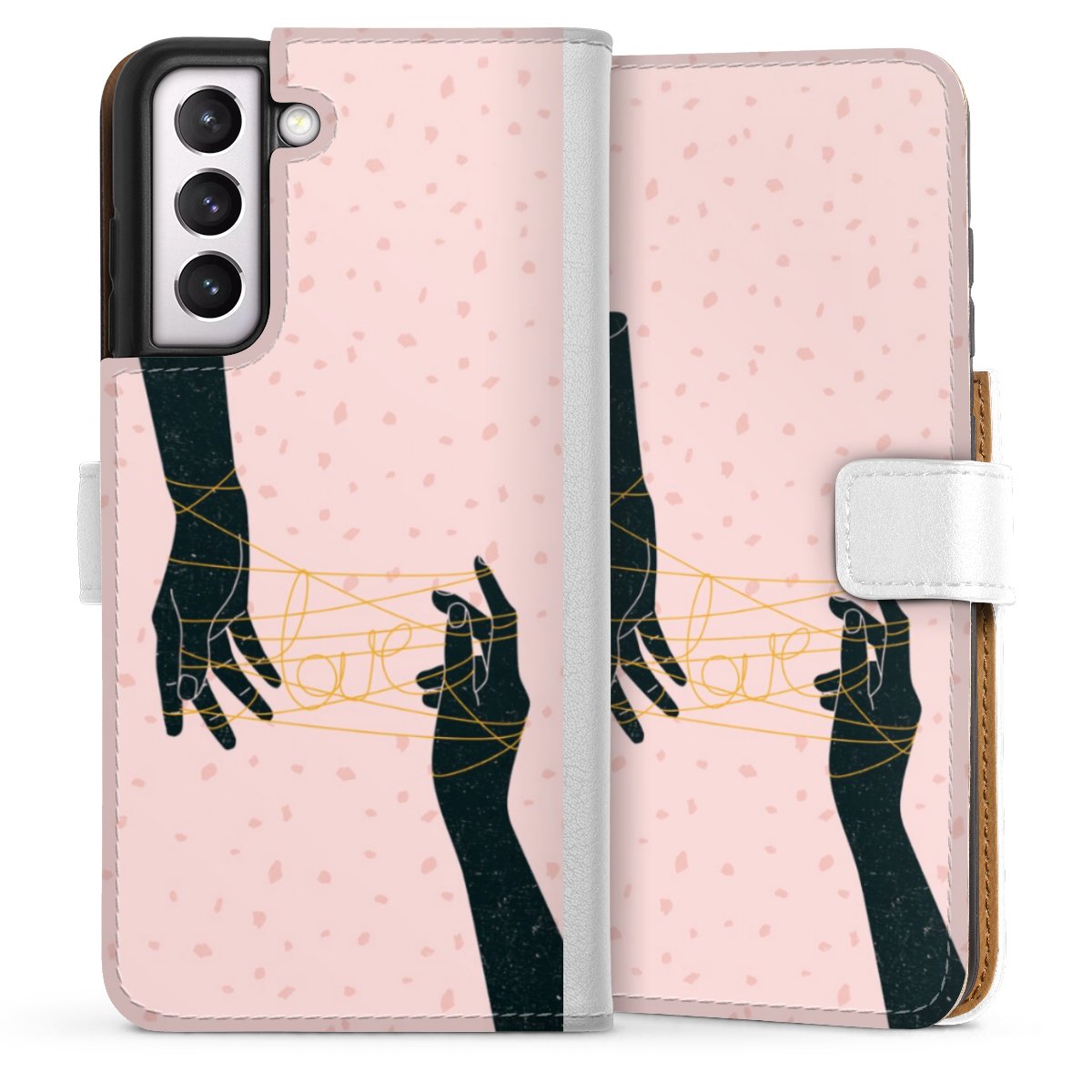 For our Sideflip Case we are using our advanced direct printing technology. The back and frontside are fully printabale, the inside of the phone bag is left unprinted. You can order the phone case without print, printed completely or also with a partial print.