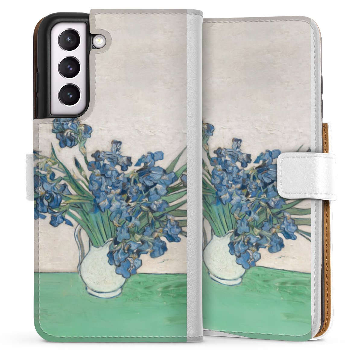 For our Sideflip Case we are using our advanced direct printing technology. The back and frontside are fully printabale, the inside of the phone bag is left unprinted. You can order the phone case without print, printed completely or also with a partial print.