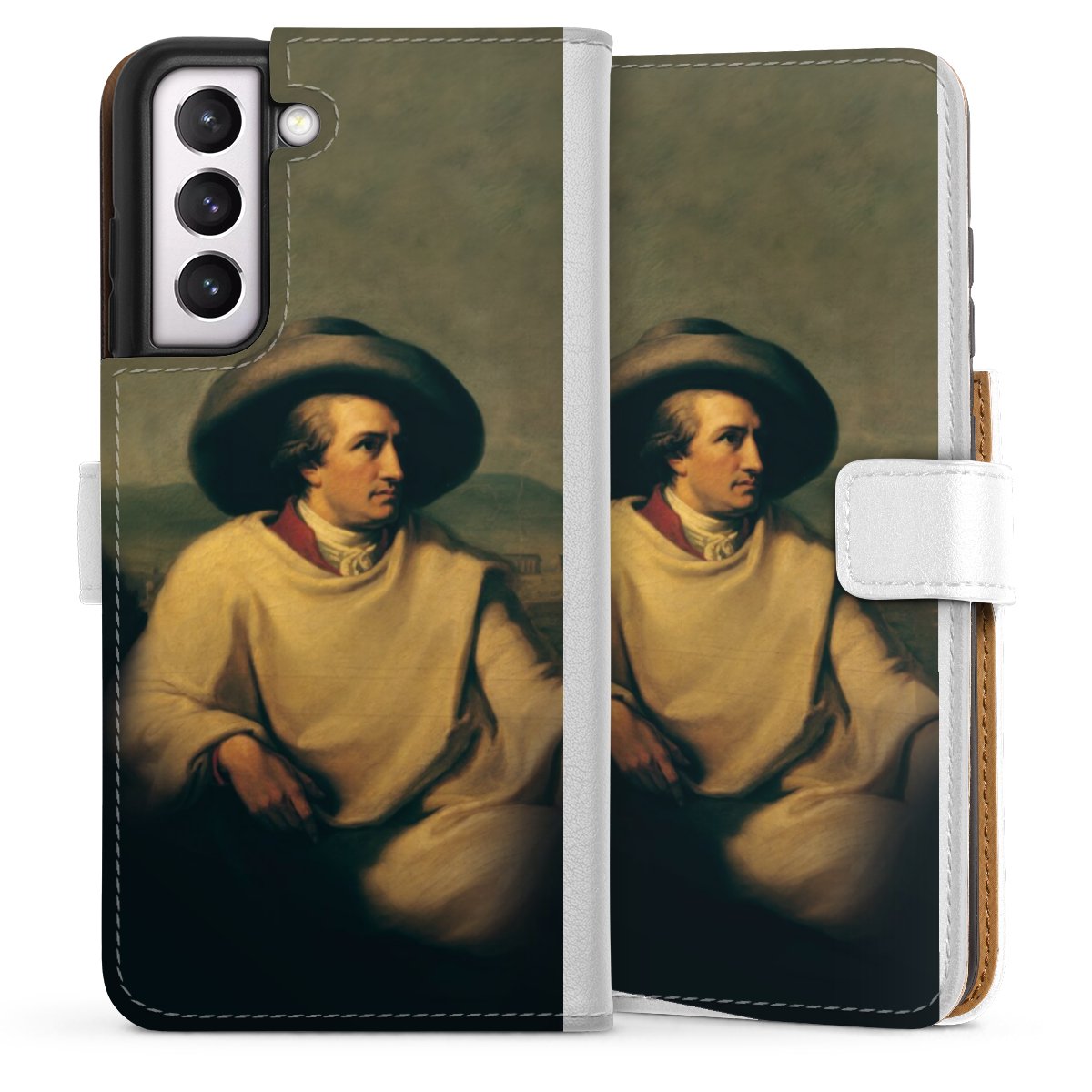 For our Sideflip Case we are using our advanced direct printing technology. The back and frontside are fully printabale, the inside of the phone bag is left unprinted. You can order the phone case without print, printed completely or also with a partial print.
