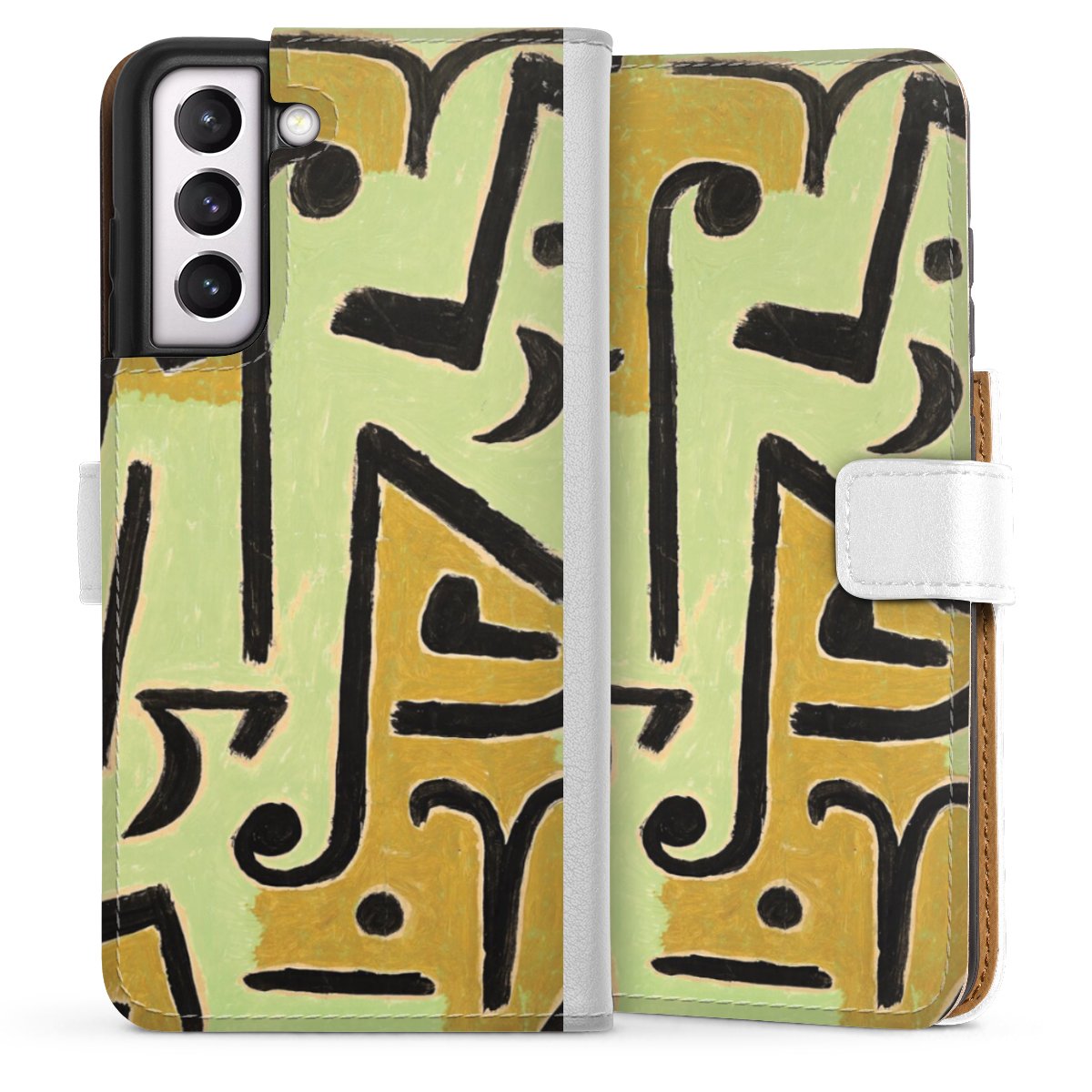 For our Sideflip Case we are using our advanced direct printing technology. The back and frontside are fully printabale, the inside of the phone bag is left unprinted. You can order the phone case without print, printed completely or also with a partial print.