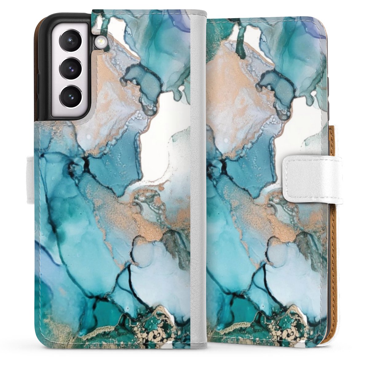 For our Sideflip Case we are using our advanced direct printing technology. The back and frontside are fully printabale, the inside of the phone bag is left unprinted. You can order the phone case without print, printed completely or also with a partial print.