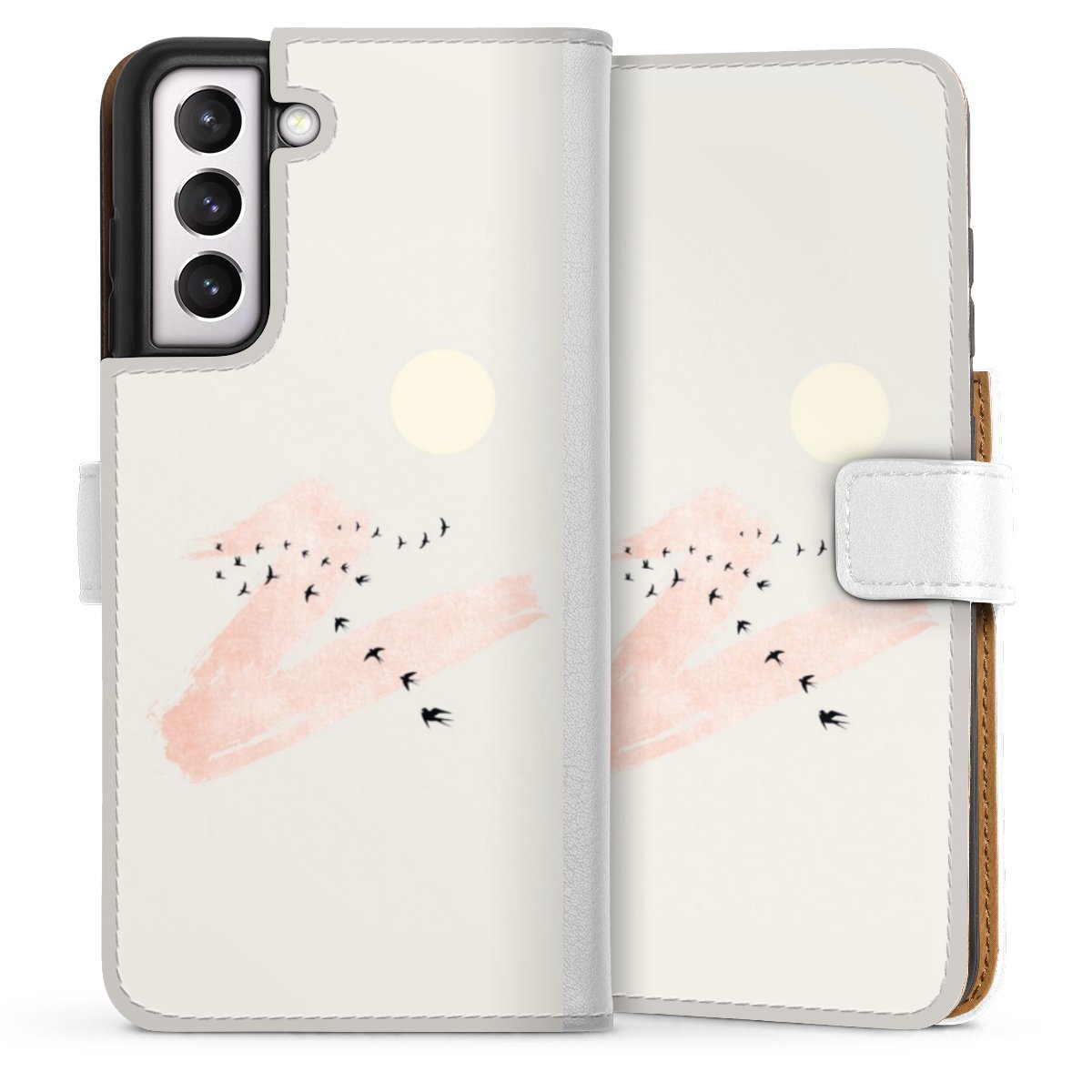 For our Sideflip Case we are using our advanced direct printing technology. The back and frontside are fully printabale, the inside of the phone bag is left unprinted. You can order the phone case without print, printed completely or also with a partial print.