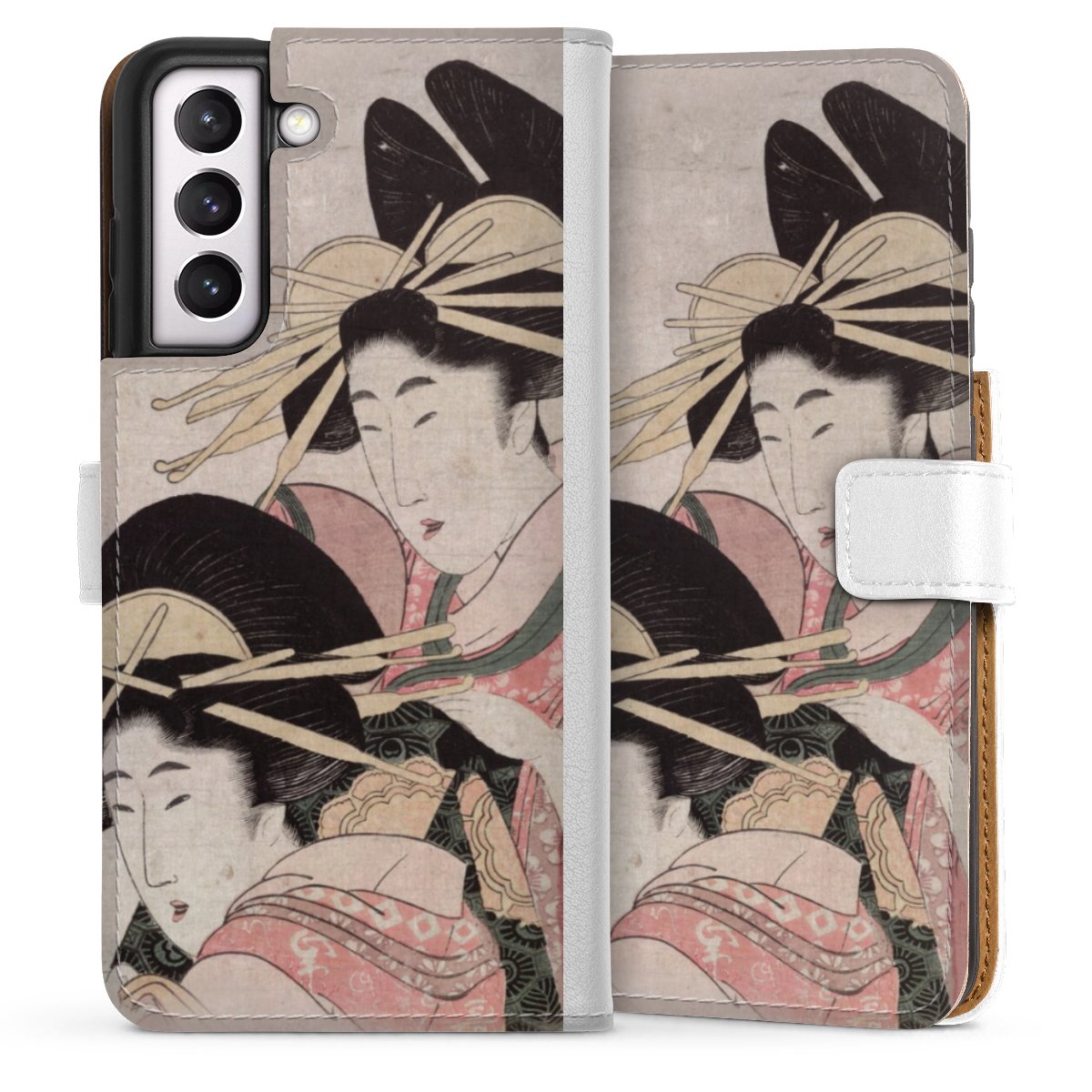 For our Sideflip Case we are using our advanced direct printing technology. The back and frontside are fully printabale, the inside of the phone bag is left unprinted. You can order the phone case without print, printed completely or also with a partial print.