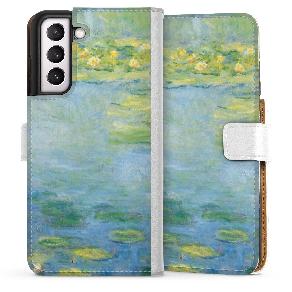 For our Sideflip Case we are using our advanced direct printing technology. The back and frontside are fully printabale, the inside of the phone bag is left unprinted. You can order the phone case without print, printed completely or also with a partial print.