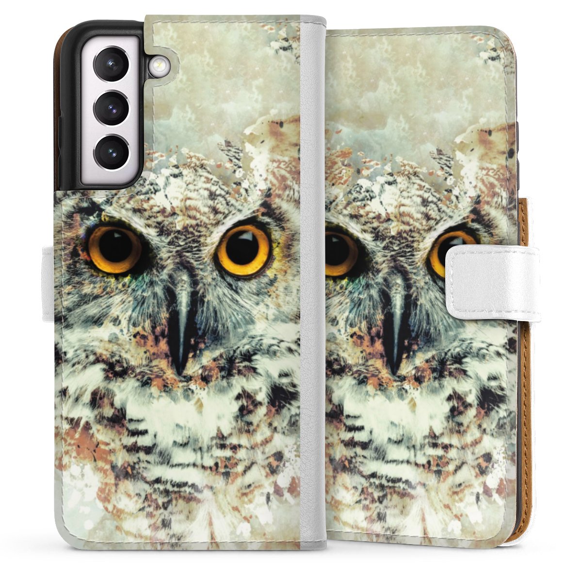 For our Sideflip Case we are using our advanced direct printing technology. The back and frontside are fully printabale, the inside of the phone bag is left unprinted. You can order the phone case without print, printed completely or also with a partial print.