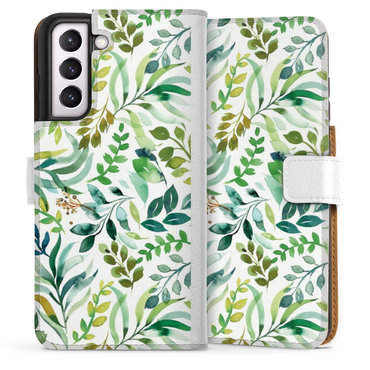 For our Sideflip Case we are using our advanced direct printing technology. The back and frontside are fully printabale, the inside of the phone bag is left unprinted. You can order the phone case without print, printed completely or also with a partial print.