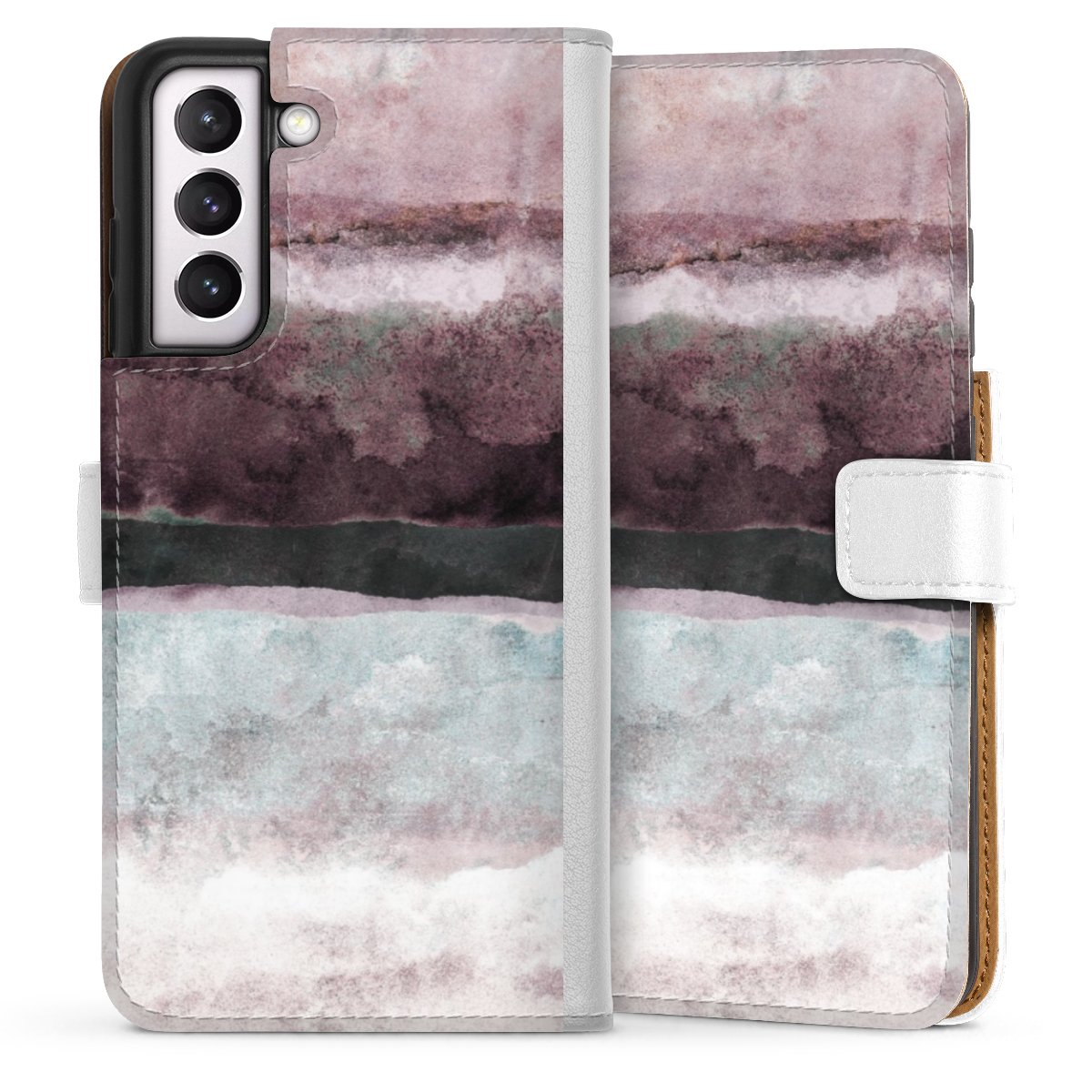 For our Sideflip Case we are using our advanced direct printing technology. The back and frontside are fully printabale, the inside of the phone bag is left unprinted. You can order the phone case without print, printed completely or also with a partial print.