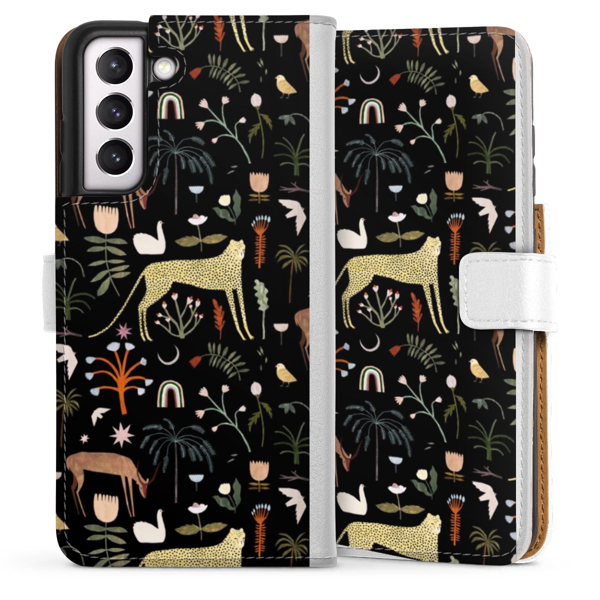 For our Sideflip Case we are using our advanced direct printing technology. The back and frontside are fully printabale, the inside of the phone bag is left unprinted. You can order the phone case without print, printed completely or also with a partial print.