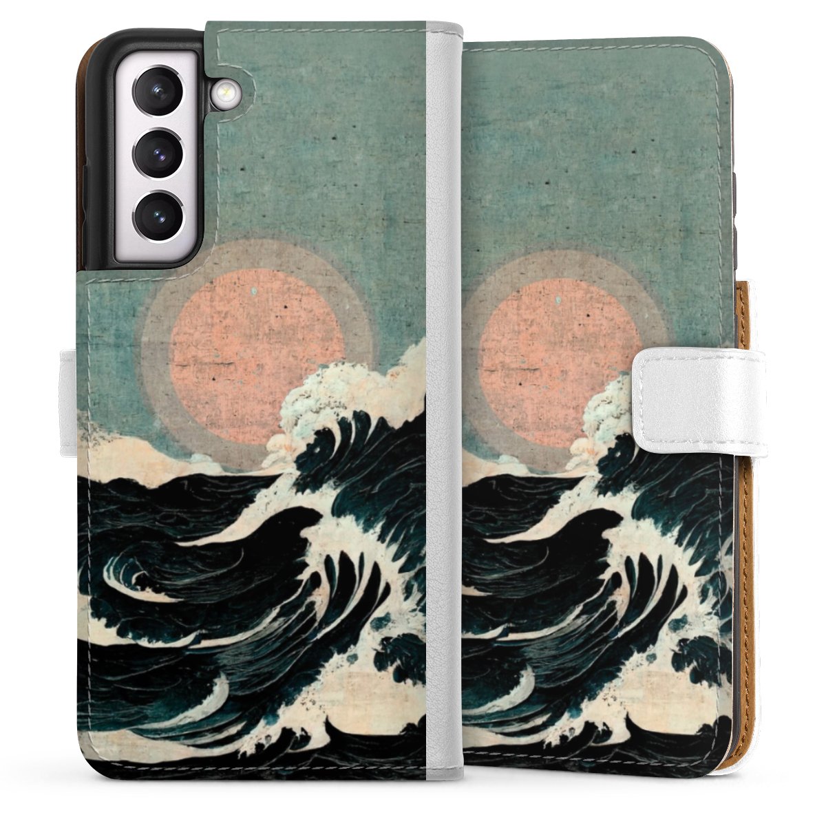 For our Sideflip Case we are using our advanced direct printing technology. The back and frontside are fully printabale, the inside of the phone bag is left unprinted. You can order the phone case without print, printed completely or also with a partial print.