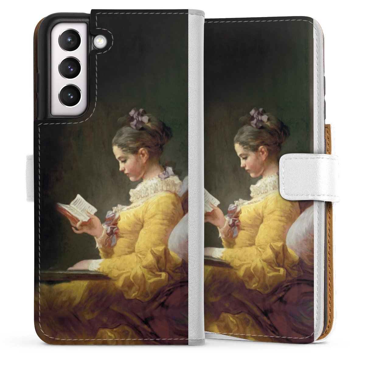For our Sideflip Case we are using our advanced direct printing technology. The back and frontside are fully printabale, the inside of the phone bag is left unprinted. You can order the phone case without print, printed completely or also with a partial print.
