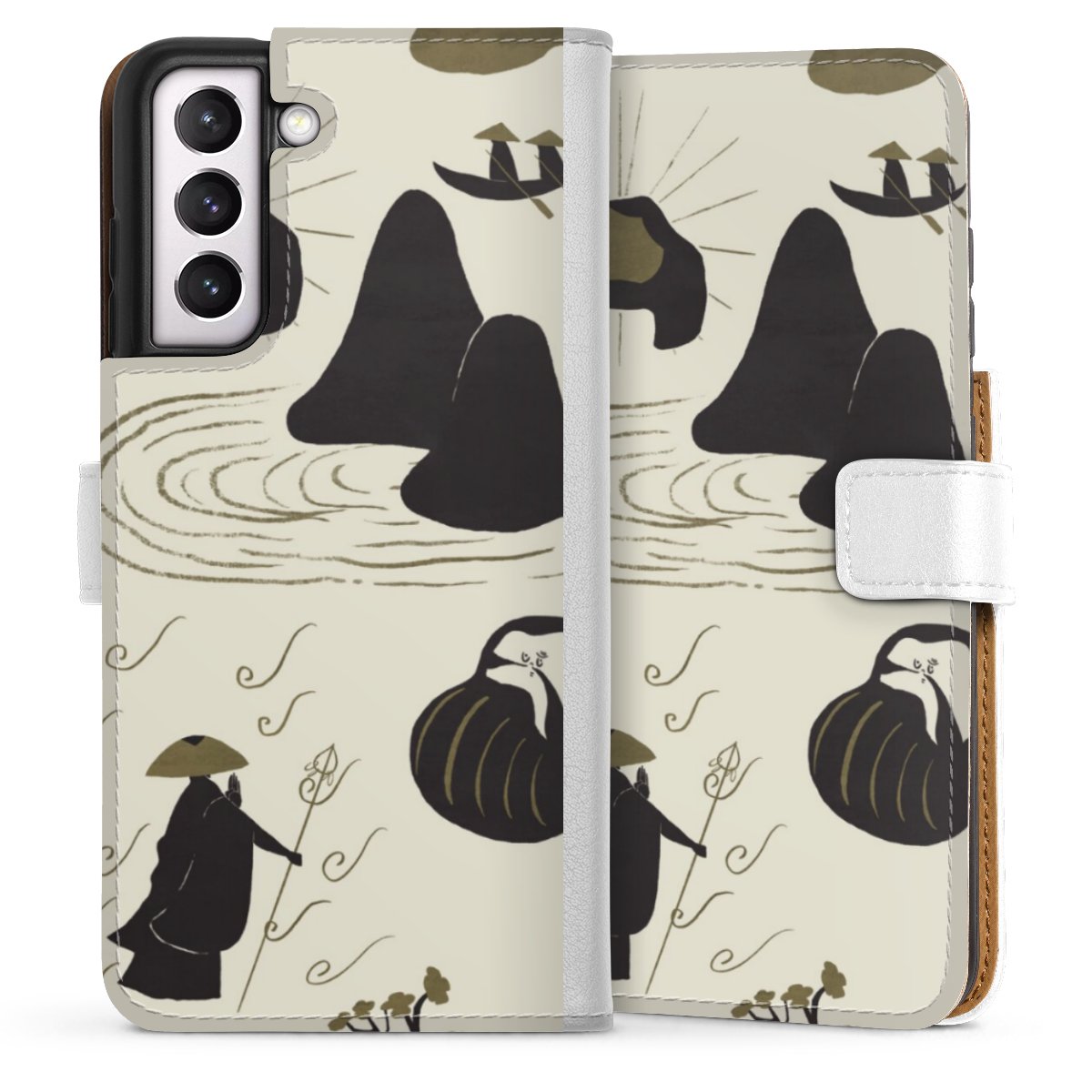 For our Sideflip Case we are using our advanced direct printing technology. The back and frontside are fully printabale, the inside of the phone bag is left unprinted. You can order the phone case without print, printed completely or also with a partial print.