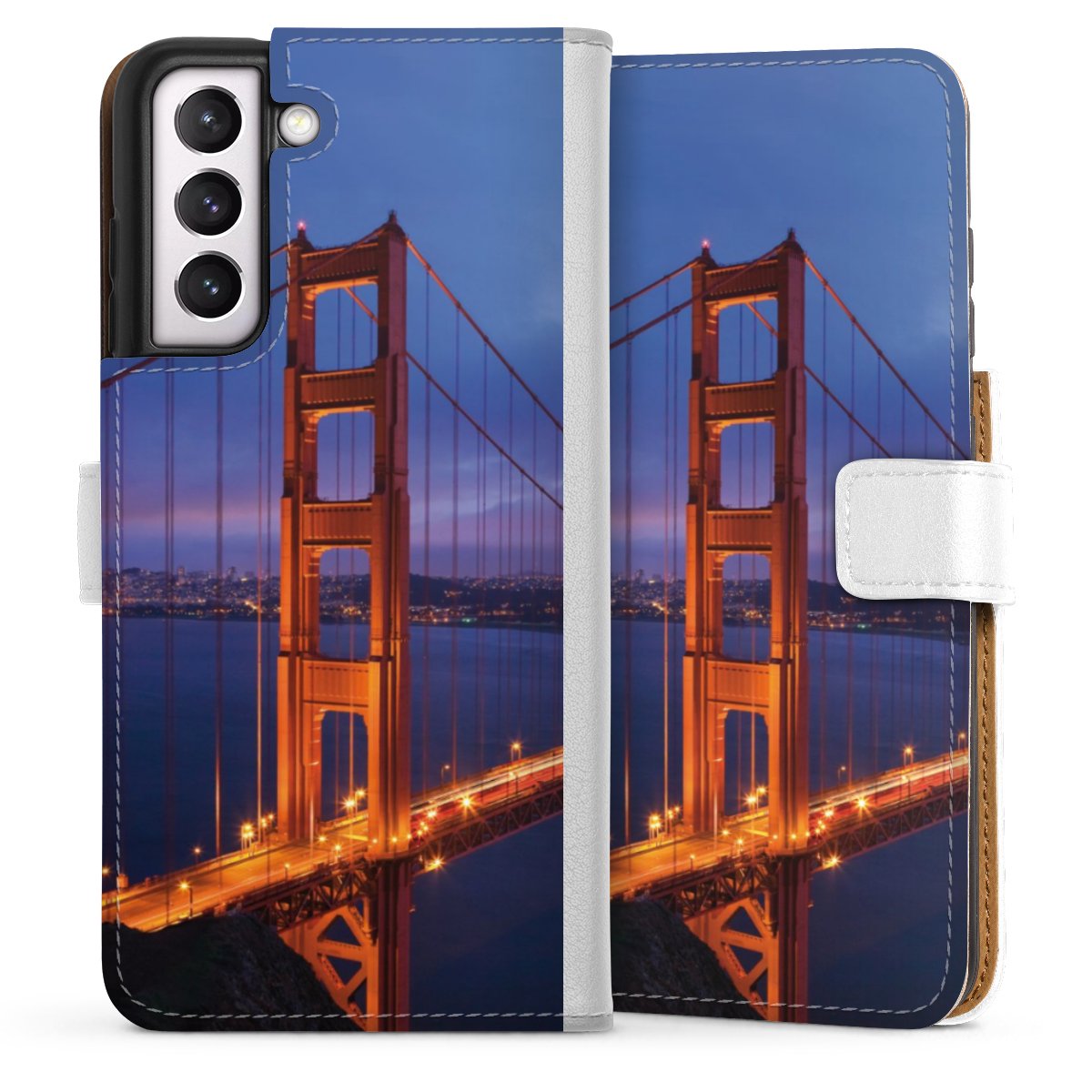 For our Sideflip Case we are using our advanced direct printing technology. The back and frontside are fully printabale, the inside of the phone bag is left unprinted. You can order the phone case without print, printed completely or also with a partial print.