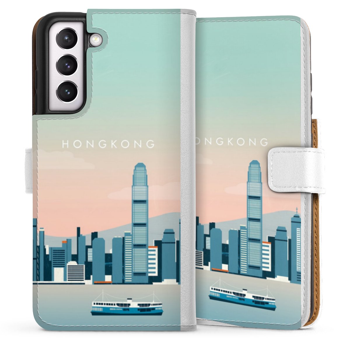 For our Sideflip Case we are using our advanced direct printing technology. The back and frontside are fully printabale, the inside of the phone bag is left unprinted. You can order the phone case without print, printed completely or also with a partial print.