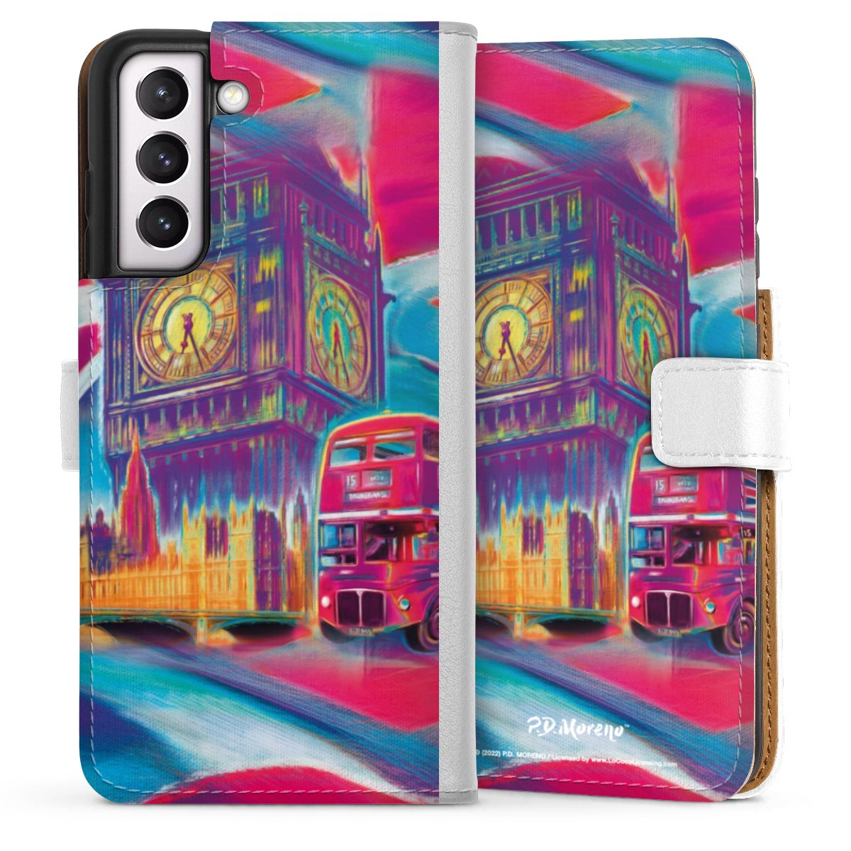 For our Sideflip Case we are using our advanced direct printing technology. The back and frontside are fully printabale, the inside of the phone bag is left unprinted. You can order the phone case without print, printed completely or also with a partial print.