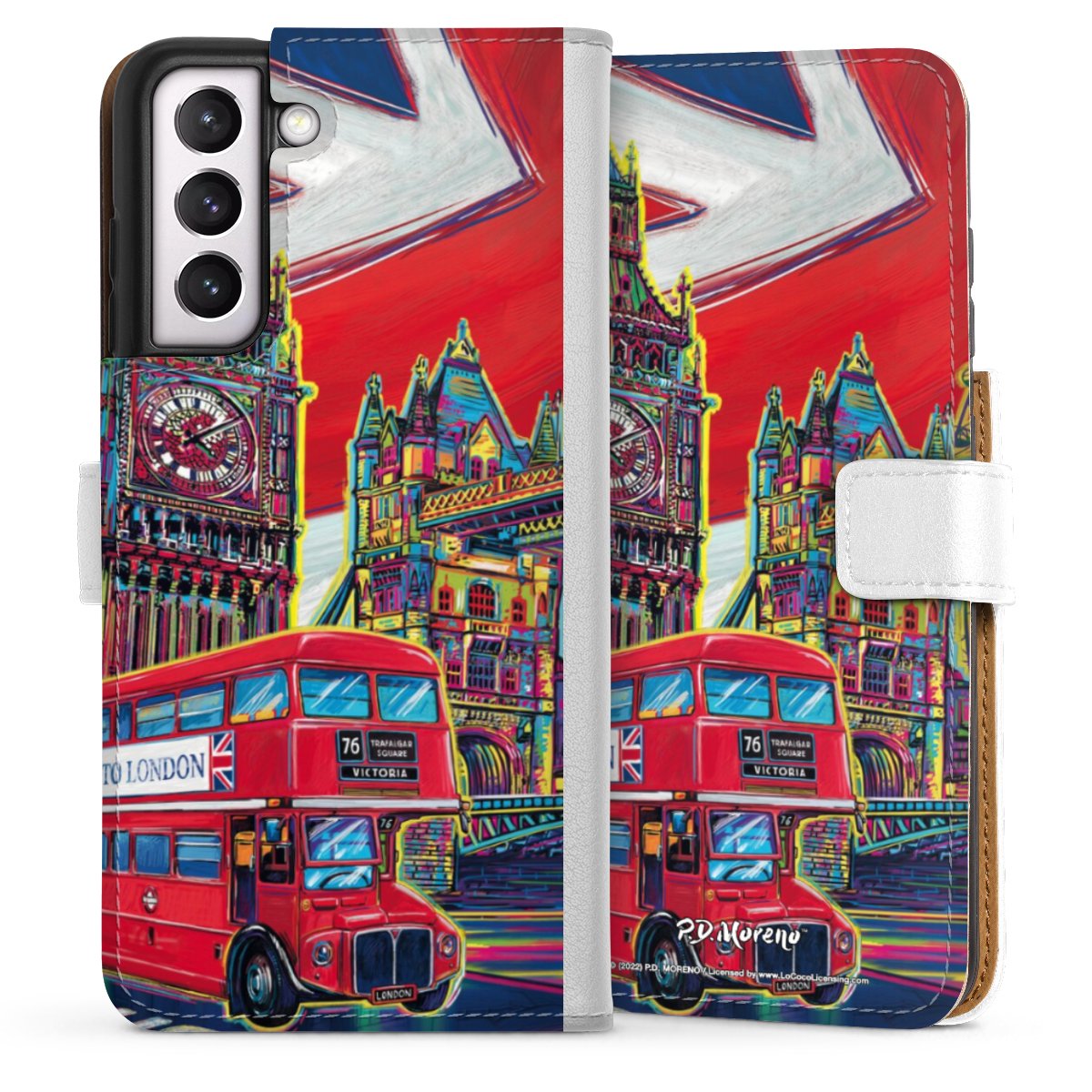For our Sideflip Case we are using our advanced direct printing technology. The back and frontside are fully printabale, the inside of the phone bag is left unprinted. You can order the phone case without print, printed completely or also with a partial print.