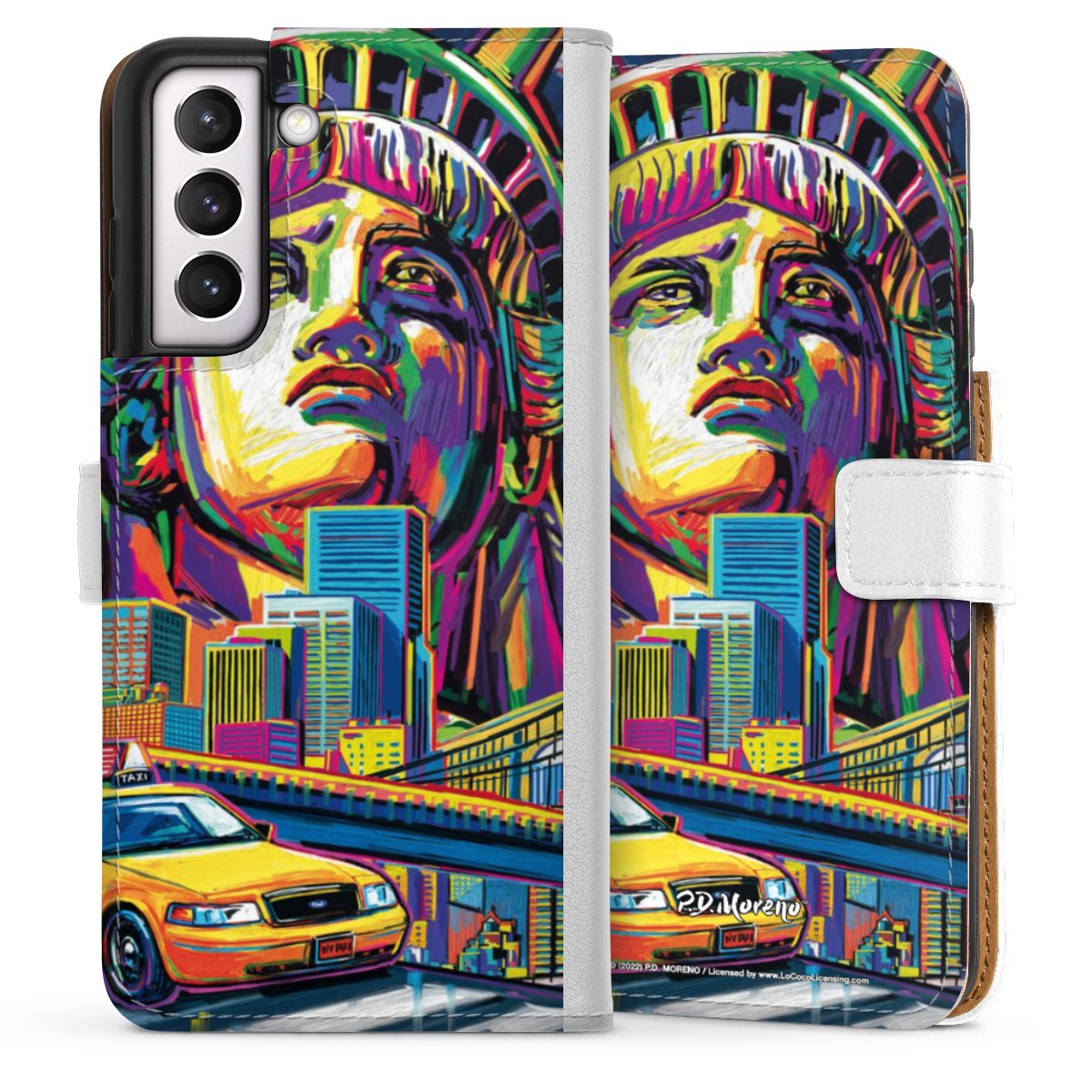 For our Sideflip Case we are using our advanced direct printing technology. The back and frontside are fully printabale, the inside of the phone bag is left unprinted. You can order the phone case without print, printed completely or also with a partial print.