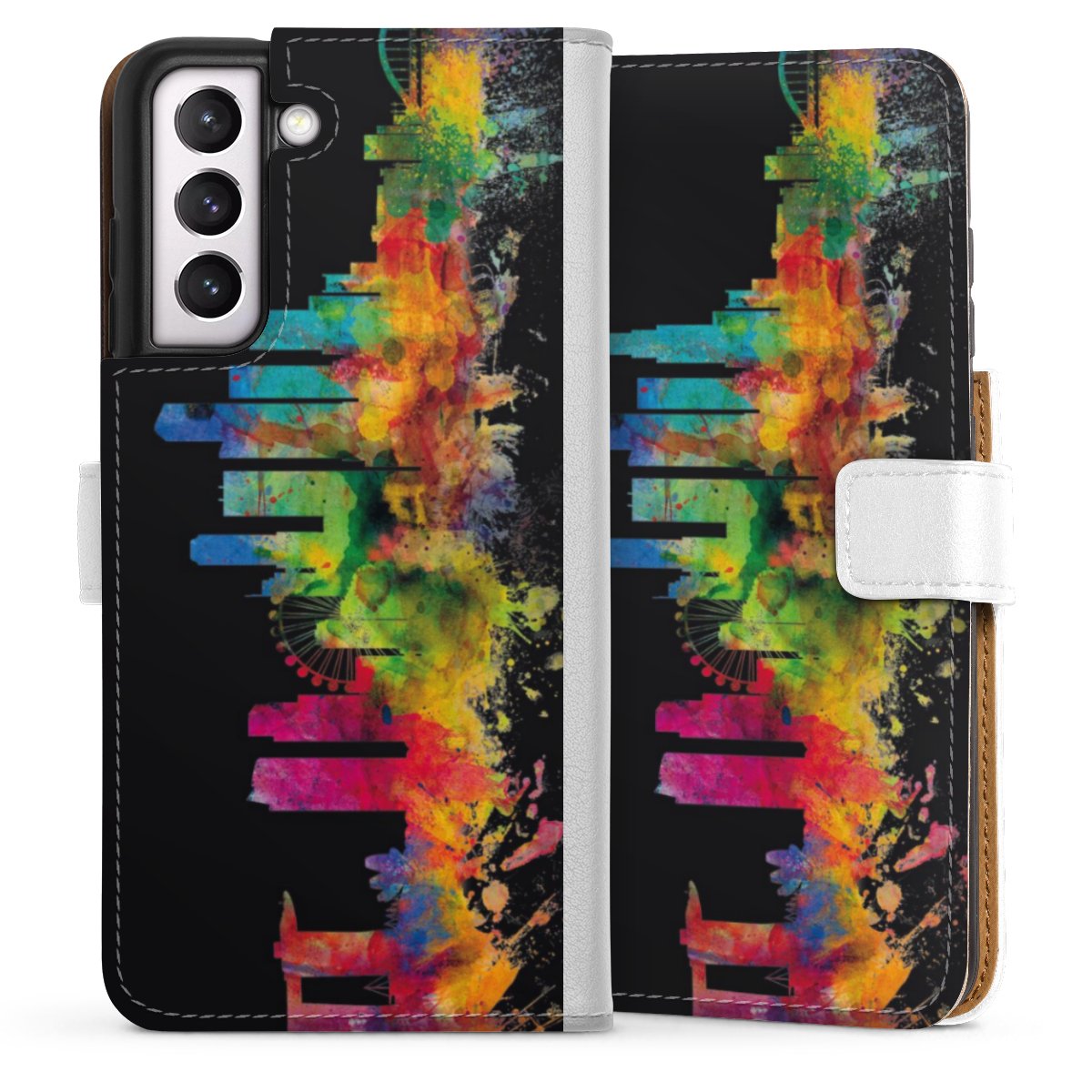 For our Sideflip Case we are using our advanced direct printing technology. The back and frontside are fully printabale, the inside of the phone bag is left unprinted. You can order the phone case without print, printed completely or also with a partial print.