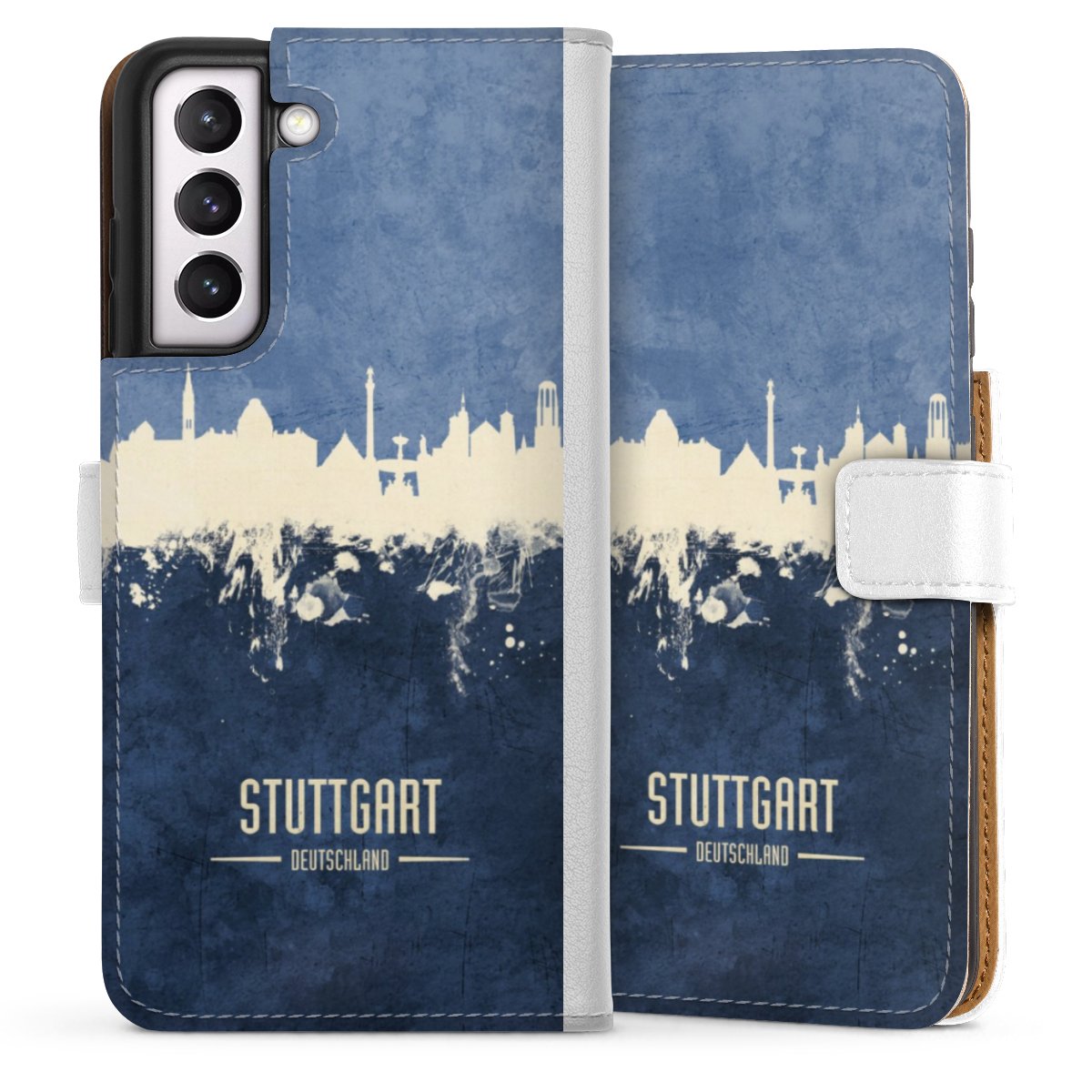 For our Sideflip Case we are using our advanced direct printing technology. The back and frontside are fully printabale, the inside of the phone bag is left unprinted. You can order the phone case without print, printed completely or also with a partial print.