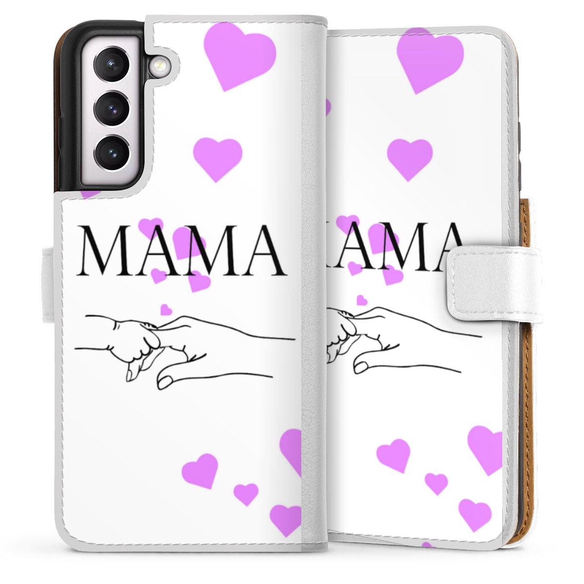 For our Sideflip Case we are using our advanced direct printing technology. The back and frontside are fully printabale, the inside of the phone bag is left unprinted. You can order the phone case without print, printed completely or also with a partial print.