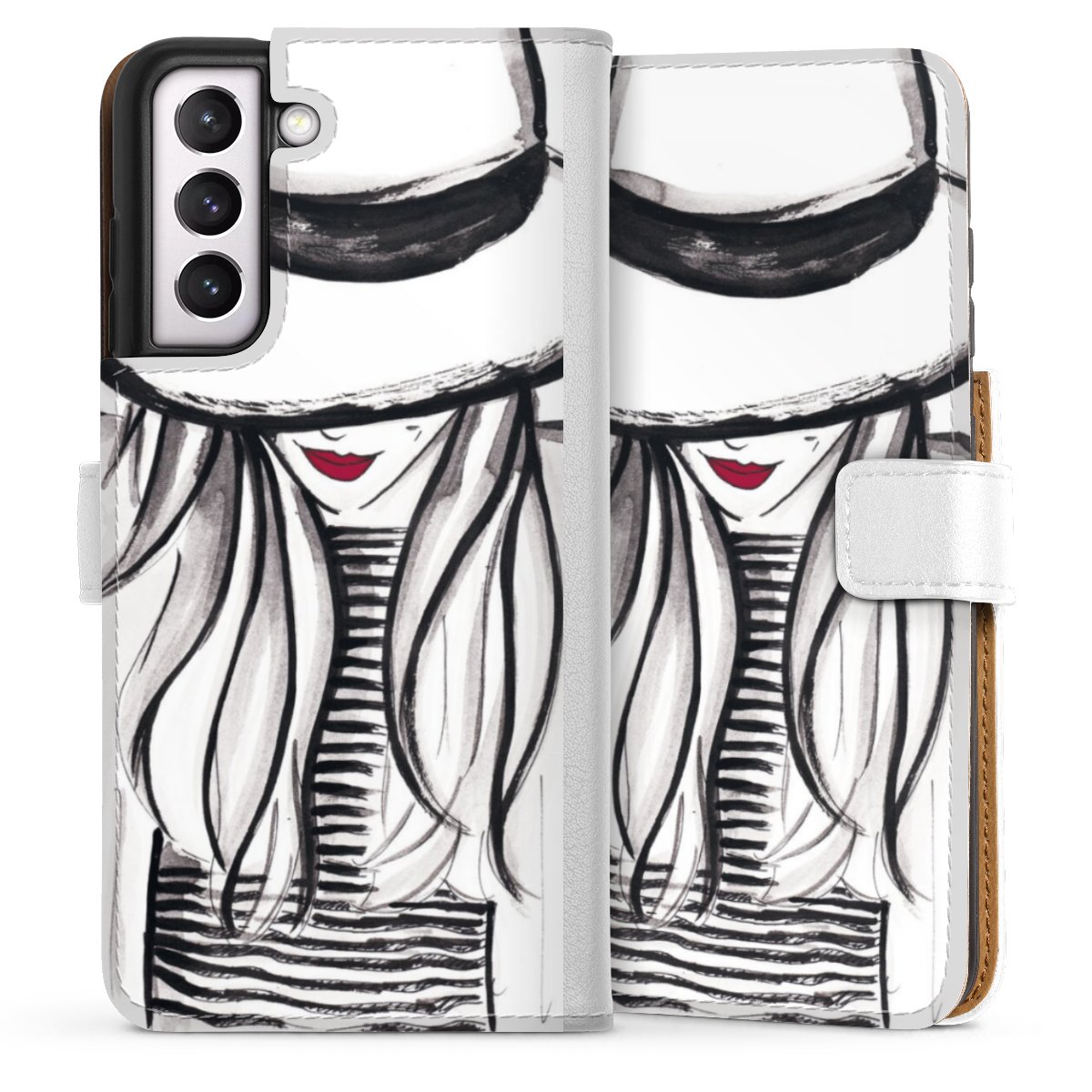 For our Sideflip Case we are using our advanced direct printing technology. The back and frontside are fully printabale, the inside of the phone bag is left unprinted. You can order the phone case without print, printed completely or also with a partial print.