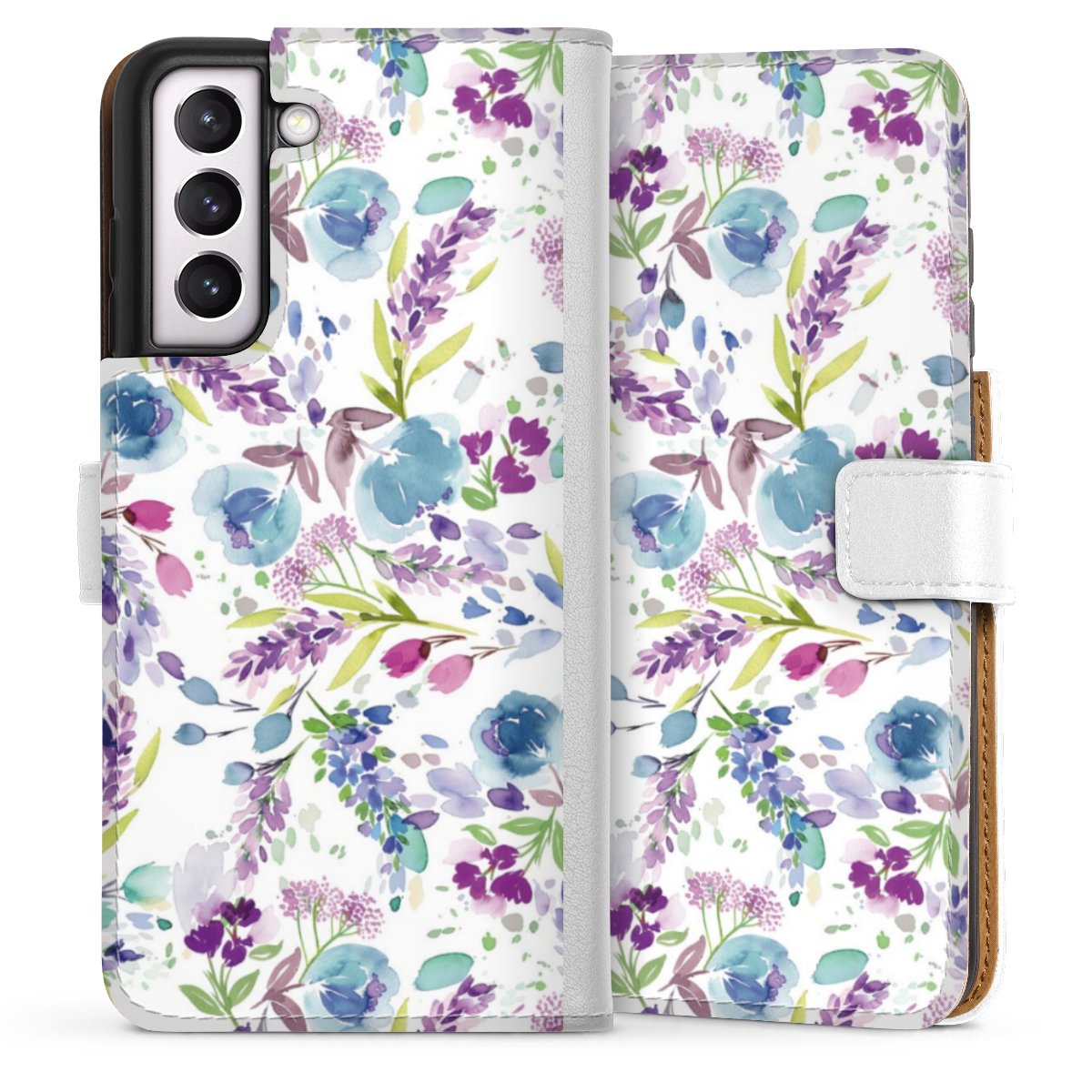 For our Sideflip Case we are using our advanced direct printing technology. The back and frontside are fully printabale, the inside of the phone bag is left unprinted. You can order the phone case without print, printed completely or also with a partial print.