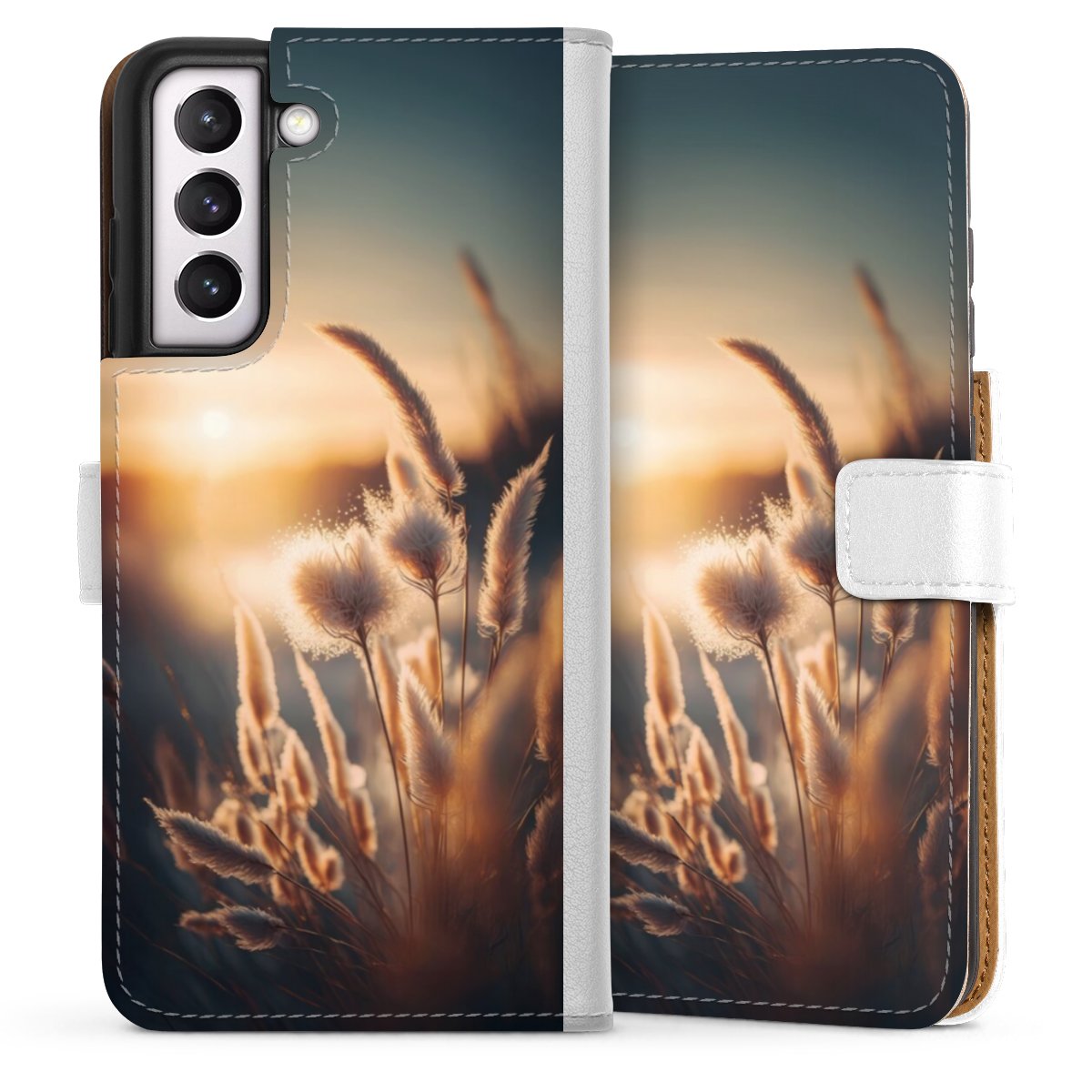 For our Sideflip Case we are using our advanced direct printing technology. The back and frontside are fully printabale, the inside of the phone bag is left unprinted. You can order the phone case without print, printed completely or also with a partial print.
