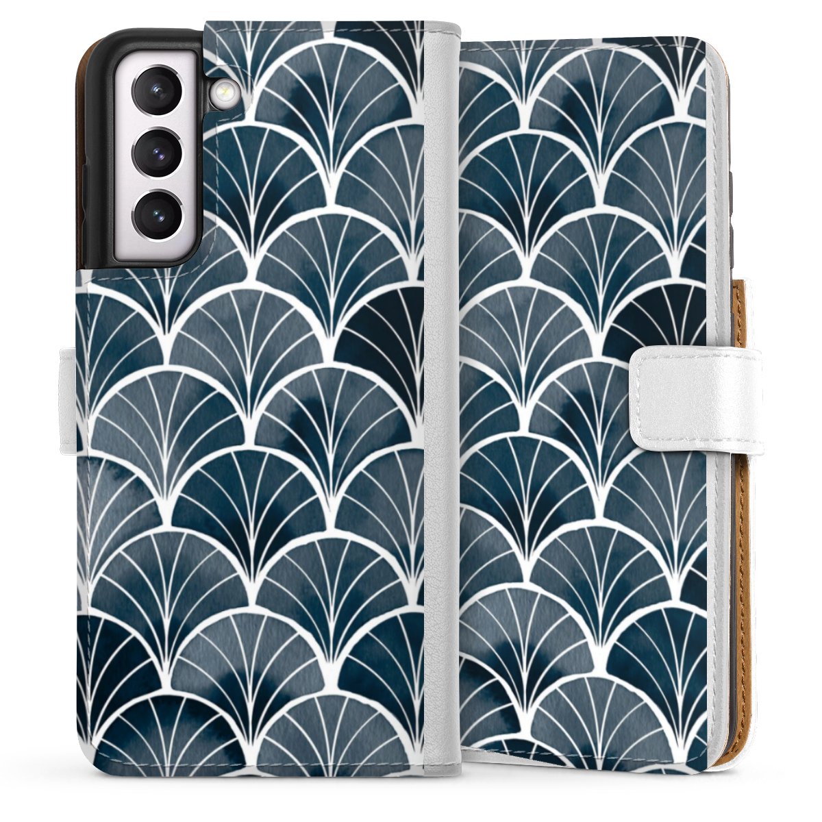 For our Sideflip Case we are using our advanced direct printing technology. The back and frontside are fully printabale, the inside of the phone bag is left unprinted. You can order the phone case without print, printed completely or also with a partial print.