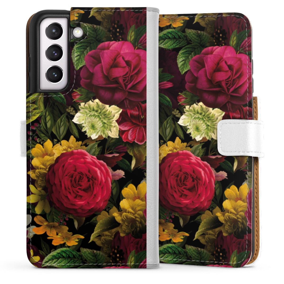 For our Sideflip Case we are using our advanced direct printing technology. The back and frontside are fully printabale, the inside of the phone bag is left unprinted. You can order the phone case without print, printed completely or also with a partial print.