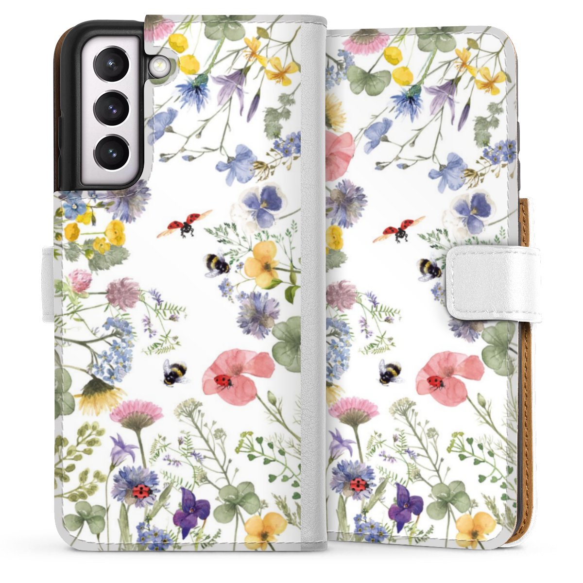 For our Sideflip Case we are using our advanced direct printing technology. The back and frontside are fully printabale, the inside of the phone bag is left unprinted. You can order the phone case without print, printed completely or also with a partial print.