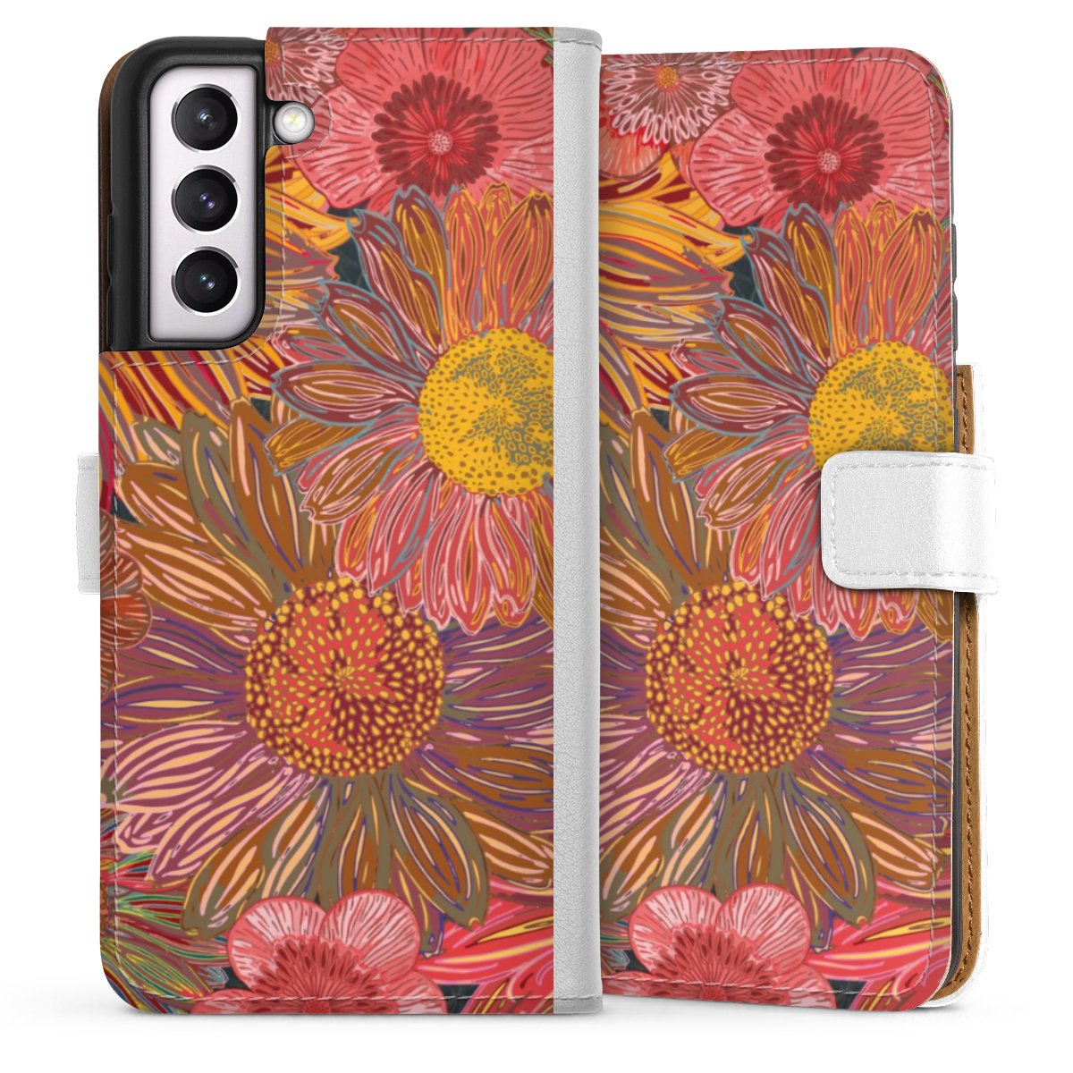 For our Sideflip Case we are using our advanced direct printing technology. The back and frontside are fully printabale, the inside of the phone bag is left unprinted. You can order the phone case without print, printed completely or also with a partial print.