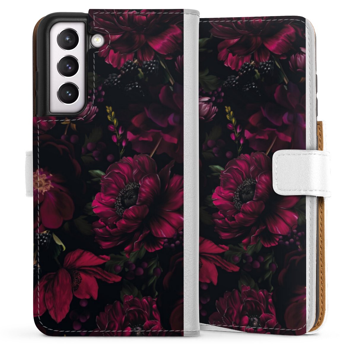 For our Sideflip Case we are using our advanced direct printing technology. The back and frontside are fully printabale, the inside of the phone bag is left unprinted. You can order the phone case without print, printed completely or also with a partial print.