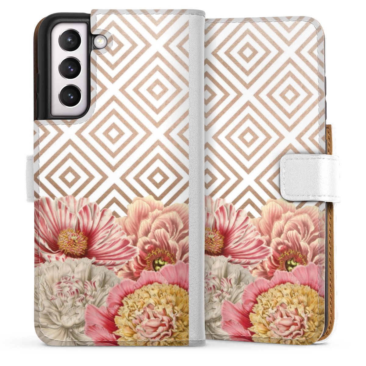 For our Sideflip Case we are using our advanced direct printing technology. The back and frontside are fully printabale, the inside of the phone bag is left unprinted. You can order the phone case without print, printed completely or also with a partial print.