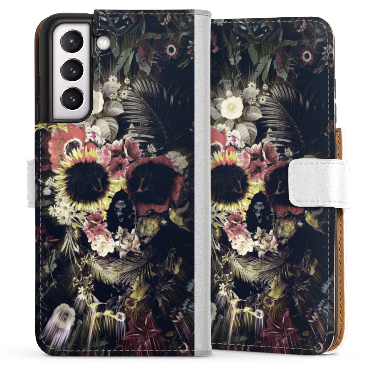 For our Sideflip Case we are using our advanced direct printing technology. The back and frontside are fully printabale, the inside of the phone bag is left unprinted. You can order the phone case without print, printed completely or also with a partial print.