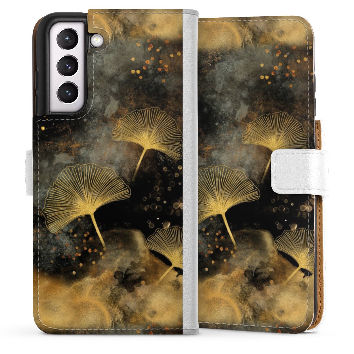 For our Sideflip Case we are using our advanced direct printing technology. The back and frontside are fully printabale, the inside of the phone bag is left unprinted. You can order the phone case without print, printed completely or also with a partial print.