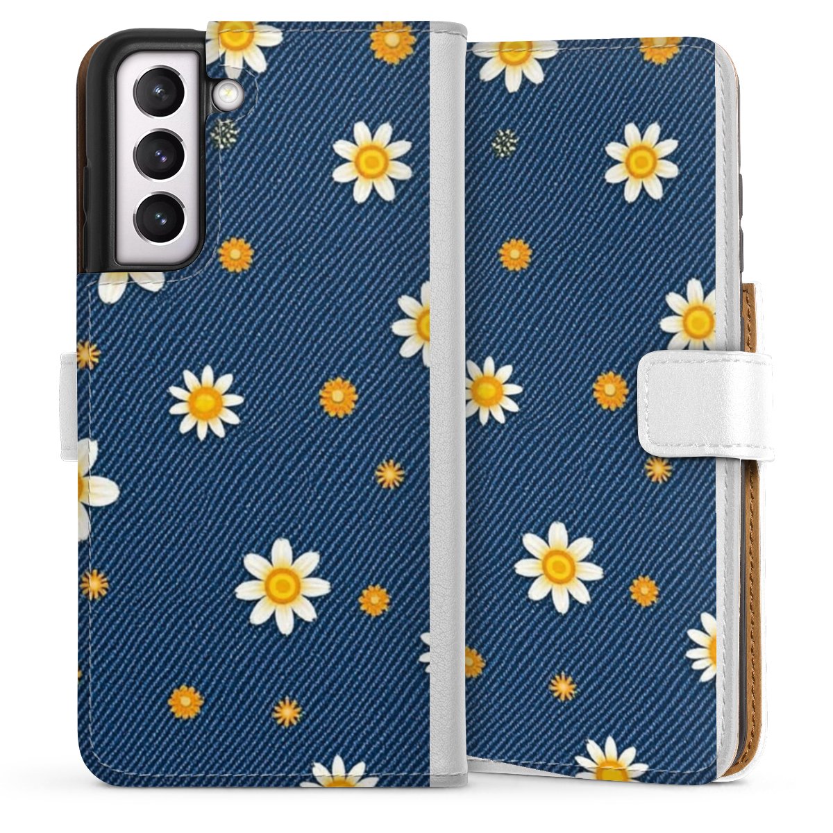 For our Sideflip Case we are using our advanced direct printing technology. The back and frontside are fully printabale, the inside of the phone bag is left unprinted. You can order the phone case without print, printed completely or also with a partial print.