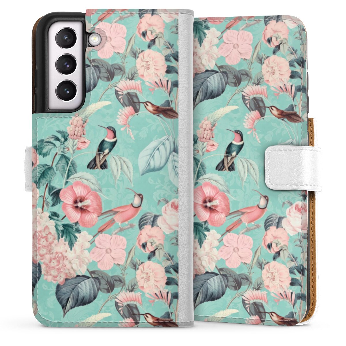 For our Sideflip Case we are using our advanced direct printing technology. The back and frontside are fully printabale, the inside of the phone bag is left unprinted. You can order the phone case without print, printed completely or also with a partial print.