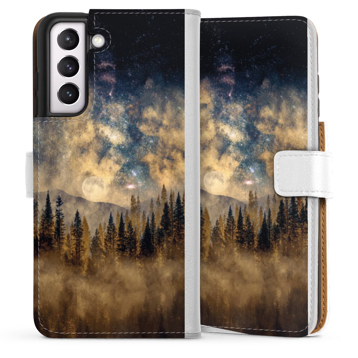 For our Sideflip Case we are using our advanced direct printing technology. The back and frontside are fully printabale, the inside of the phone bag is left unprinted. You can order the phone case without print, printed completely or also with a partial print.