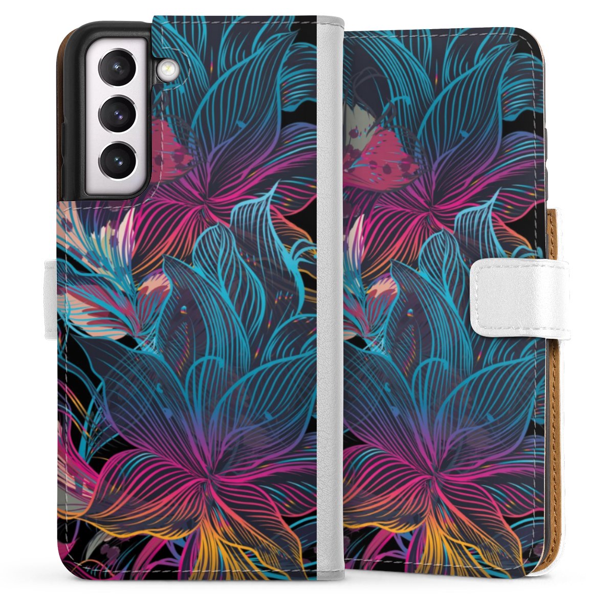 For our Sideflip Case we are using our advanced direct printing technology. The back and frontside are fully printabale, the inside of the phone bag is left unprinted. You can order the phone case without print, printed completely or also with a partial print.