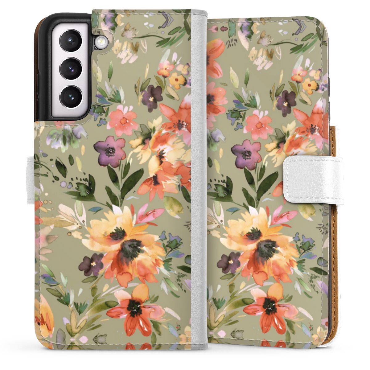 For our Sideflip Case we are using our advanced direct printing technology. The back and frontside are fully printabale, the inside of the phone bag is left unprinted. You can order the phone case without print, printed completely or also with a partial print.