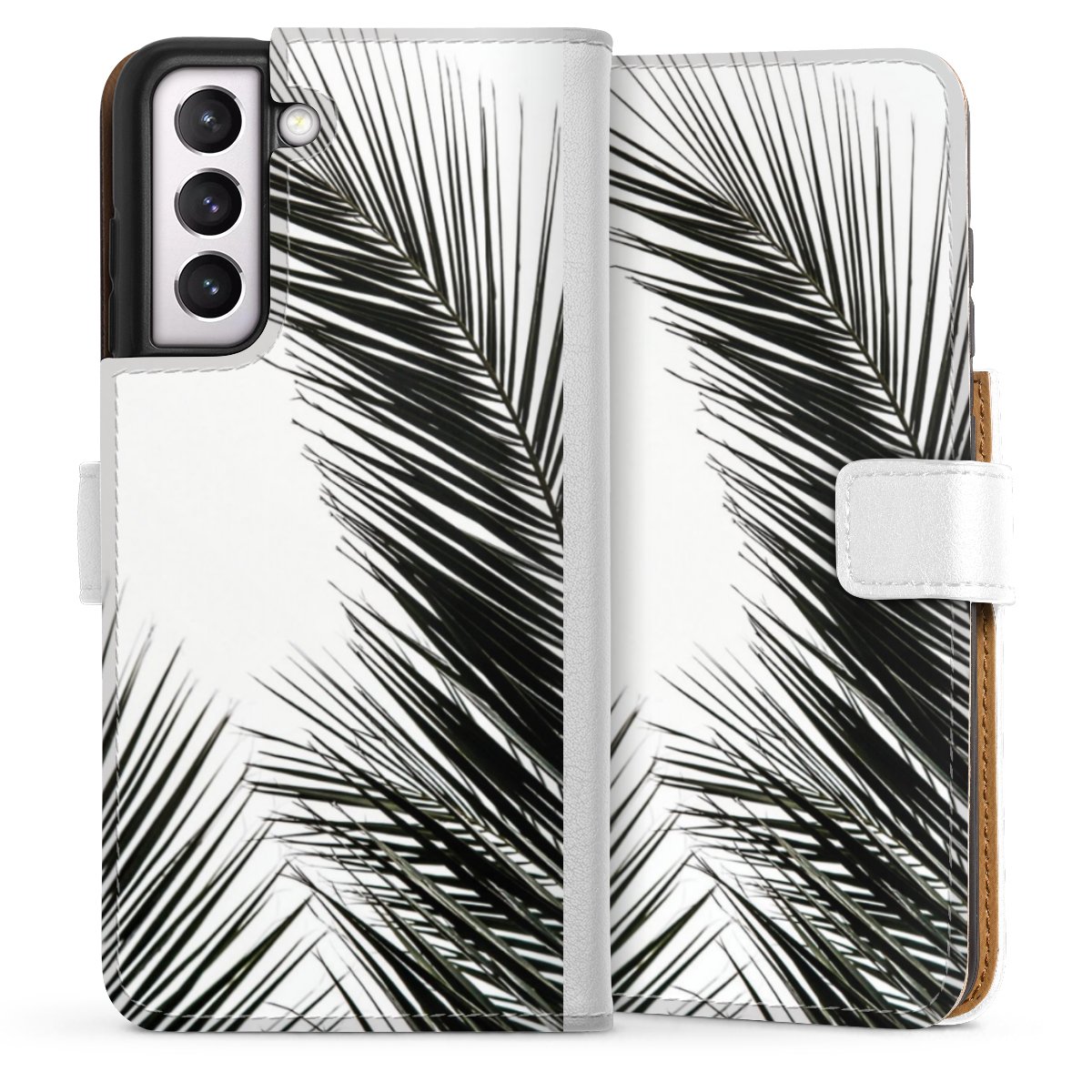 For our Sideflip Case we are using our advanced direct printing technology. The back and frontside are fully printabale, the inside of the phone bag is left unprinted. You can order the phone case without print, printed completely or also with a partial print.