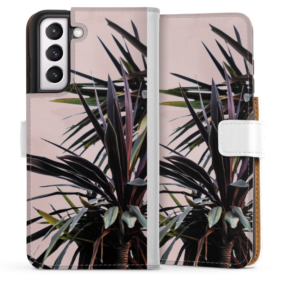 For our Sideflip Case we are using our advanced direct printing technology. The back and frontside are fully printabale, the inside of the phone bag is left unprinted. You can order the phone case without print, printed completely or also with a partial print.