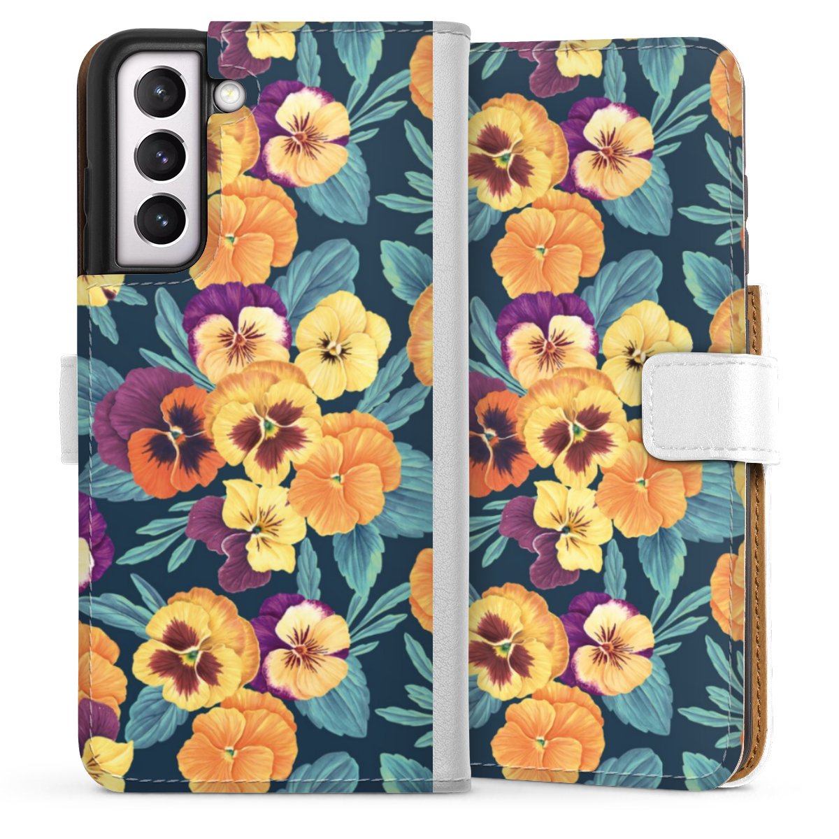 For our Sideflip Case we are using our advanced direct printing technology. The back and frontside are fully printabale, the inside of the phone bag is left unprinted. You can order the phone case without print, printed completely or also with a partial print.