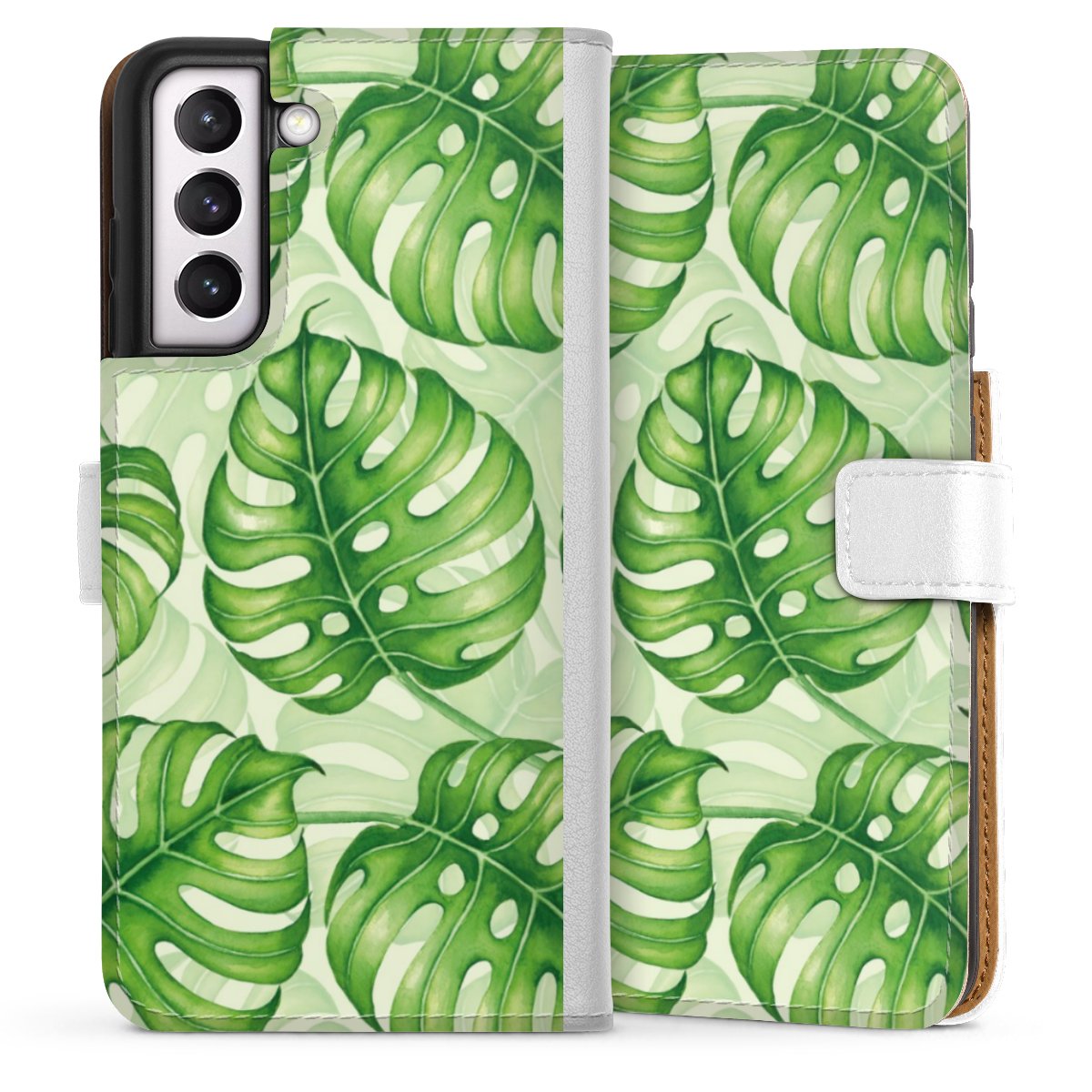 For our Sideflip Case we are using our advanced direct printing technology. The back and frontside are fully printabale, the inside of the phone bag is left unprinted. You can order the phone case without print, printed completely or also with a partial print.